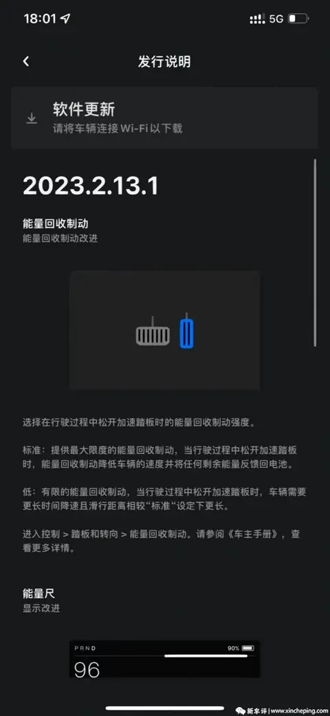 在上个月,网上就流传出了有关特斯拉推送取消强制动能回收的OTA发行说明,新版车机系统提供了“标准”和“低”两个不同力度的动能回收调节选项,驾驶员可以根据自己的用车习惯进行调节。不过很多用户发现该版本OTA无法正常更新,特斯拉官方则表示该OTA为错误推送。