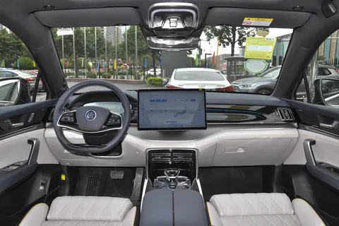 内部配置:12.3英寸全液晶仪表、15.6英寸中控屏、真皮座椅、皮质多功能方向盘等配置。