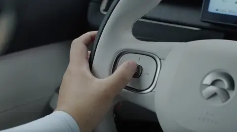 蔚来ES7的领航辅助开启方式非常简单,在车机内设置好驾驶辅助激活NOP+ Beta后,它的驾驶辅助就会优先使用领航辅助。按下方向盘左边的金属按钮,仪表中央会提示激活,并且目标时速会变为蓝绿色。