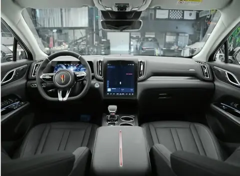 内饰方面,红旗HS3配备有三幅扁平底方向盘、12.3英寸液晶仪表盘和12.6英寸垂直中控屏。根据不同型号,其他内部配置包括无钥匙进入、自适应巡航控制和253种环境灯光。中控台有两个无线充电座和两个杯架。