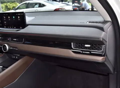内饰部分,新车多处采用软皮包裹,类似中控区下端、扶手区及门板处。空调出风口呈蜂窝网状,空调出风口下方为温度调节按钮,通过上下拨动实现温度升降。