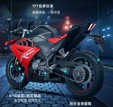 赛科龙RC250整备质量152公斤,座高有780毫米和760毫米两种可选。配置方面,新车搭载KYB避振系统、西互品牌制动系统、铝合金单摇臂、滑动离合、TFT液晶仪表以及单向电子快排系统。在安全配置方面,该车还搭载有ABS和TCS牵引力控制系统。