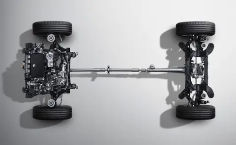 燃油动力汽车有两大类平台,普通代步车和中端车大多使用横置前驱或四驱,中高端车大多使用纵置后驱或四驱;横置前驱平台的缺点很明显,那就是重心集中于车头,前后轴荷差异大;打造成四驱也往往没有双速分动箱,没有越野车标配的“4L(低速四驱)”模式,普通没有差速锁。