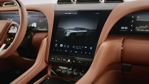 具体来看,仰望U8采用了名为星环座舱的设计理念,据悉其灵感取自宇宙星环,环抱式的中控设计,搭配大面积的皮质包裹并采用了双缝线处理,以及门板上大理石样式的饰板,让车内极具豪华氛围。同时,车内还配备了采用OLED面板的12.8英寸曲面中控屏,其倾斜角度为37度,能带来更好的使用体验,并且结合23.6英寸的仪表屏与副驾娱乐屏,以及后排两个12.8英寸的屏幕,车内可以支持5屏联动功能。