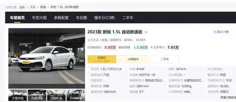 近年来,随着自主品牌汽车在技术和质量上的提升,合资品牌在面对激烈竞争时也不得不放低价格上的身段,以吸引更多消费者的关注和购买。今天要聊的大众朗逸(图片|配置|询价) 2023款 新锐 1.5L 自动新逸版,紧凑型车,搭载1.5L+6AT,福州地区降至8万,接下来从外观、内饰、动力等方面来聊下该车。