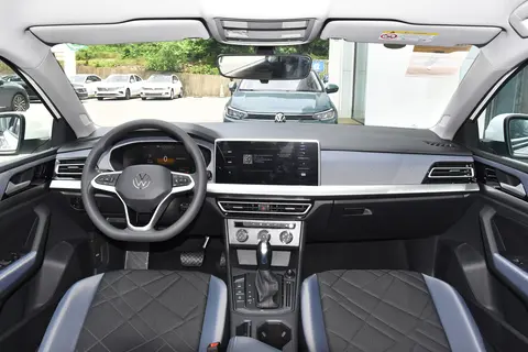 内饰部分,整个风格作为经典的大众风,整体表现较为简洁实用。搭载的大尺寸多媒体显示屏为8英寸,内部支持OTA升级、车联网、语音识别等功能。中控台在用料方面多为硬塑材质,并配以饰板进行修饰,方向盘为三幅式的多功能方向盘,在把握上手简单。空调出风口周边都加入了红色的装饰,提升了运动感,车辆保留了大量的实体按键,便于驾驶员行驶当中的操作。