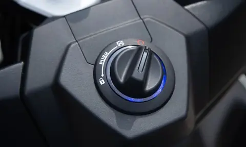 两段式的坐垫开启方式也很奇葩,不过空间还不错,前面可以放进去一顶全盔和手套,后面虽然空间不大,但是内置USB充电接口,放一些小物件也还是可以的。