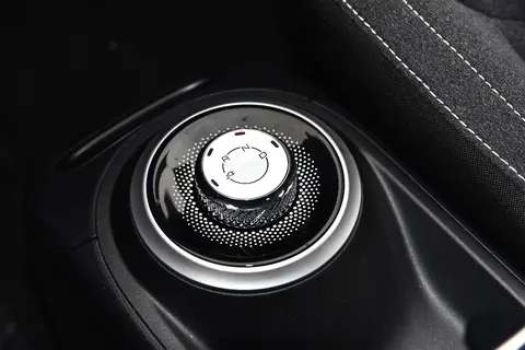 内饰主以黑色为基色,椭圆形奶白色组件进行拼接,呈现卡通类型设计,同样采用双联屏设计,以此强化体验感,中控下方设立空调控制面板,便于操控的同时强化内饰设计感,使得内饰略显复古味。