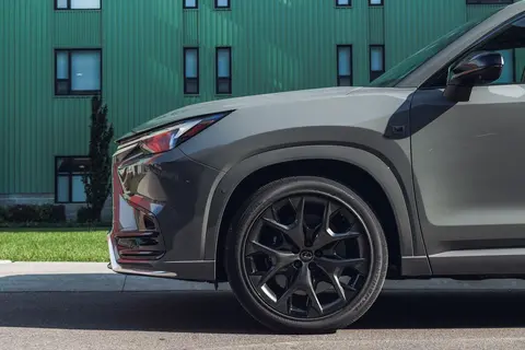 在车身侧面,新车则与同平台的丰田大汉兰达相似,有着肉眼可见的宽大修长线条,超过5米的车身长度定位要略高于汉兰达,平直的车顶也显示了空间实用为主的定位。当然毕竟是雷克萨斯车型,在腰线方面显得更加复杂,D柱处有着略微的隆起,配合大尺寸运动轮毂等元素。显得更加的高档。
