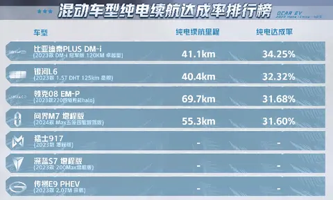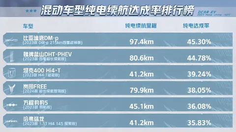 除了亏电油耗,纯电续航达成率也是一个重要的考核指标,达成率越高,意味着纯电行驶里程越长,车主的日常用车成本就越低。