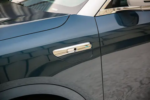 侧面可以看到双色车身。车身线条便平顺,看起来比较沉稳。风阻系数为0.26。后视镜会有NFC无接触式解锁模块。
