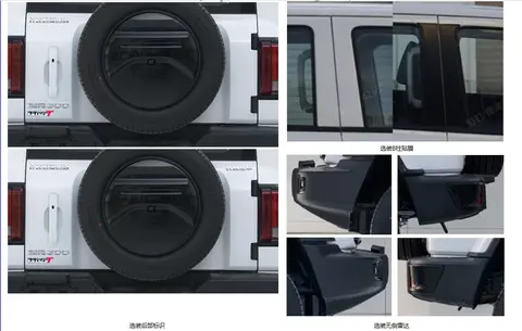 而根据此前申报图来看,坦克300 Hi4-T将延续了2.0T 穿越者的设计风格,矩形进气格栅内辅以三横幅镀铬饰条,配合两侧圆形大灯组,显得既精致、又复古,而凸起的前包围也相当硬朗。车身尺寸长宽高依旧为4760*1930*1903mm,轴距2750mm,方正的轮廓加之外扩式轮眉无不彰显“硬汉”风格。而侧开式尾门、背挂式备胎等,又进一步提升了硬派越野气息。