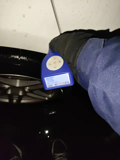 在对车辆外观进行检测时,发现外观存在轻微划痕和修复,具体问题点在右后翼子板,经喷漆修复。其余部分无明显瑕疵,整体外观保持得相当完好。
