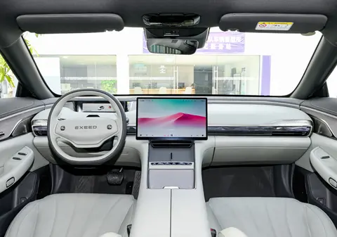 内饰主打的是简洁、科技与豪华,采用一体式环抱座舱设计,内部搭载8155芯片。狭长的全液晶仪表内嵌于中控台,15.6英寸的2.5K中控屏也很显眼。