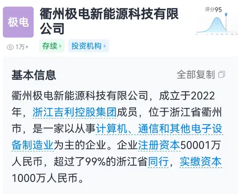 一个是它所采用的电池,吉利银河E8用的是磷酸铁锂电池,生产厂商是衢州极电。可能大家对这个会有些陌生,我也找了下。它是吉利控股集团成员。你说牛不牛!而小米SU7和智界S7的电池呢,都是来自宁德时代(江苏时代是宁德时代成员)。