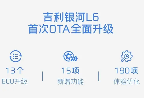 近日,我们从吉利官方获悉,吉利银河L6(图片|配置|询价)迎来首次OTA升级。本次升级涉及15项功能优化,13个ECU升级和190项体验优化。