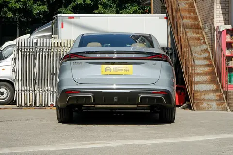从外观角度来看,银河L6延续了家族式的设计思路,前格栅采用了封闭式的格栅设计,贯穿式的灯带格外醒目。底部拥有梯形的进气口,进行了熏黑的处理。侧面看来,银河L6线条优雅,车头微微下探,营造了俯冲的感觉。它的门把手采用了隐藏式的设计,轮毂为五辐式刀锋设计,看上去运动感十足。尾部造型饱满,其中贯穿式的尾灯进行了熏黑处理,点亮后效果不错,底部还有大面积的包围,增添了运动感。