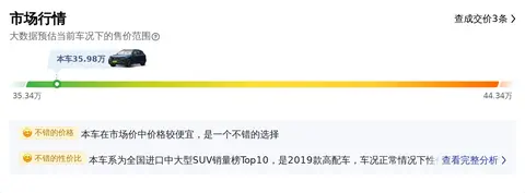 在当前的二手车市场中,这款途锐的最低报价为35.34万,而本车的报价为35.98万,最高报价为44.34万。请注意,市场行情会因时间、地区等因素发生变化,需实际情况为准。