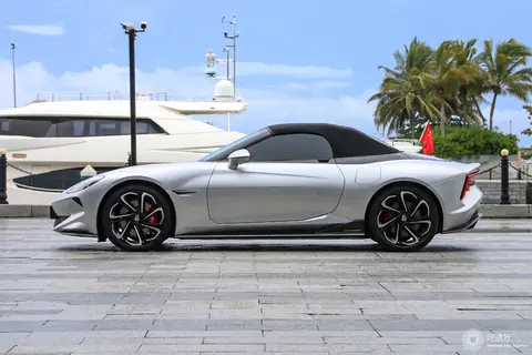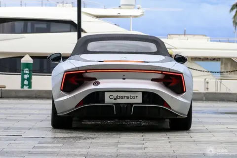 新车侧面造型较为流畅,并采用多腰线设计,搭配略微向外凸出的轮拱肌肉感十足。值得一提的是,MG Cyberster还采用软顶敞篷设计与极具特点的“剪刀门”,并配备大尺寸多辐式轮圈和红色涂装的高性能刹车系统。车尾部分,造型新颖的贯穿式LED尾灯组结合略微上翘的扰流板与底部扩散器组件极具辨识度。