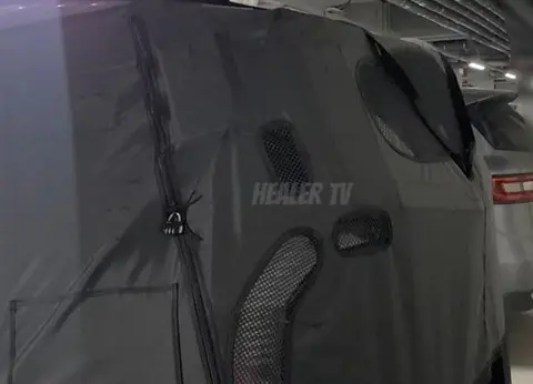 尽管测试车采用了严密的伪装措施,但我们依然可以从若干露出的设计元素中窥探到起亚EV9 GT的部分风貌。前灯组保留了标准款EV9的设计语言,采取的是一种分体式LED光源布局,传递出一种科技感与未来感。此外,伪装下隐约可见的轮眉上的高光黑装饰板以及车身上的“MV GT”字样贴纸,显露出这是一款走城市高性能路线的SUV。
