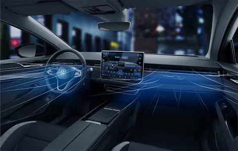 一汽-大众ID.7 VIZZION在座舱环境方面引入了多项科技创新,包括第三代空气监测系统Clean Air 3.0、双层滤芯以及负氧离子发生器,确保车内空气清新宜人。采用环保健康材料如水性垫片、水性漆、水性胶等,降低了车内有害物质的释放,创造出接近0醛0苯的座舱环境。