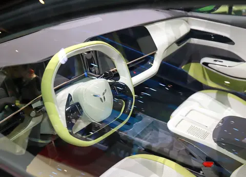 进入车内,新车整体数字化的座舱看起来很精致,而且 一看到新车配备6英寸全液晶仪表盘+15.5英寸中控屏,组成的异形双联屏,年轻的造型符合年轻消费者的审美需求,而且方向盘采用的是平底的双辐式多功能设计,撞色拼接与车内的配色相呼应,视觉效果很时尚,尤其是还配备了AR-HUD抬头显示,科技感是做得十分出色的,符合新能源的科技定位。