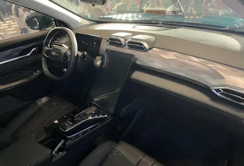 内饰方面,车内的设计还是比较有层次感的,配备10.25英寸液晶仪表和13.2英寸竖式中控屏以及双辐式多功能方向盘,中控台面采用大面积软性材质包覆,营造出了很强的豪华感和科技感。除此之外,中控台还简化了按键和旋钮,车辆空调、多媒体等设置内置在中控屏内,值得一提的是,档把采用类似水晶材质打造,颜值感也拉满。