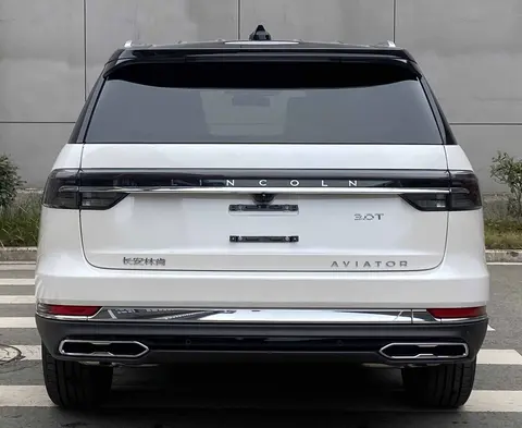 在车身侧面,新车则保持了飞行家标志性的线条,平直的车身,有着撞色设计,A柱下方Aviator标志清晰可见,大尺寸轮毂,黑色甚至镀铬后视镜罩,随处可见的镀铬条等元素也不会缺席,显示了美系大型尺寸SUV应有的风范。在车尾部分,贯穿式的尾灯,同样是整体熏黑的样式,造型更为复杂更加粗壮,预计点亮之后有着更为出色的视觉效果。贯穿式的镀铬条等元素当然不会缺席,后保险杠部分镀铬量更是相当巨大,充分符合的中国消费者的喜好。