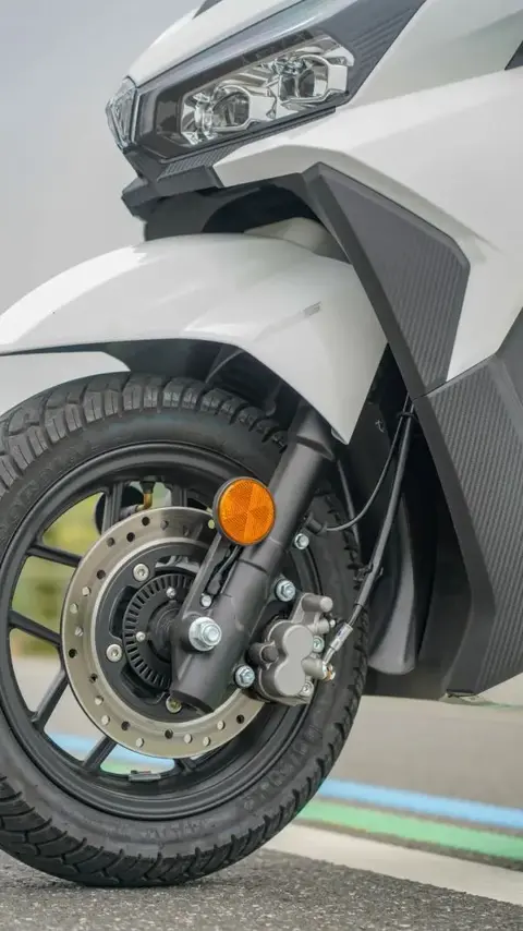 前减震为正置不可调减震,后双枪减震具备多段预载可调功能,前110-70-12,后120-70-12尺寸配备诚远品牌轮胎。后轮部分设计有多层挡泥结构。