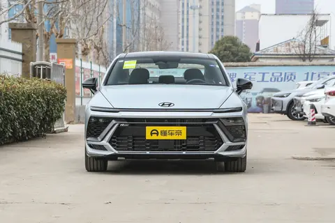 从外观看来,第十一代索纳塔采用了现代的全球ONE MODEL统一设计,在颜值方面还是很nice的。我们看,新车拥有很多细节的设计,比如车头的重心比较靠下,前机盖上有多条硬朗的线条,配合侧面的腰线和尾部的勾勒,把整个车身的运动感就建立起来了。新车拥有很多醒目的设计,比如贯穿式的车灯组和尾部H里面的尾灯设计,都是比较抓眼球的设计。车头还有立体的设计,前格栅为六边形设计,里面为蜂窝状的造型。第十一代索纳塔的侧身线条比较流畅,轿跑溜背的造型让车身非常舒展。2.0T的车型全部为N Line版本,拥有比如19寸运动轮毂、红色卡钳等设计,视觉效果等方面还有提升。