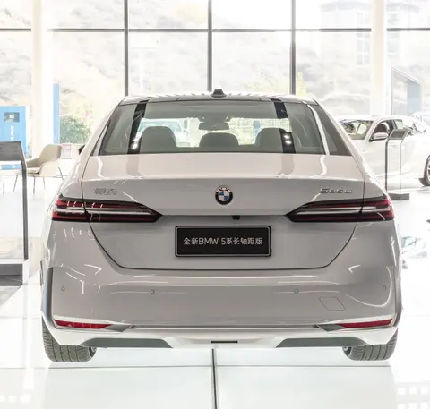 在车尾部分,扁平的尾灯组有着独特的双层布局,中间还穿插了白色灯组,令人印象深刻。尾箱末端有额外的凸起,后保险杠则用大面积的银色护板包裹,和整体风格相统一。尺寸方面,全新宝马5系长轴距版的长宽高分别为5175/1900/1520毫米,轴距为3105毫米。