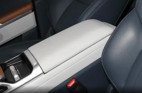 除此之外,内饰整体的做工和配色方案也很不错,除了常规的搪塑材质外,可以看到内饰多处采用了软包材质和缝线处理,走线精致,镀铬和钢琴烤漆元素也比较常见,三幅式方向盘握持手感饱满,物理按键操作起来也很方便。配色采用蓝白相间的方案,既有耐脏的特性,也显得座舱干净整洁。但这些都不是吸引我的重点,打开这款车的中央扶手箱,可以将半个手臂都伸进去,搭配中央通道下方掏空的储物容积,前排储物能力是非常可观的,但如果后期能在里面加个挡板分层就好了,否则放进去小物件就有点难找了。