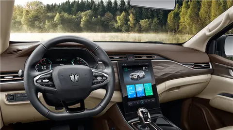 内饰方面,双拼配色搭配深色木纹饰板增加了车内档次感。在细节上,中央扶手箱和侧面车门都采用菱形图案点缀。车内还配有12英寸中控屏幕,内部系统可提供多种娱乐功能。