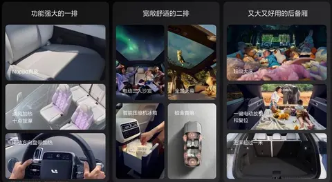 理想L6搭载了8.8L带压缩机的冰箱,支持0-7摄氏度制冷和35-50摄氏度保温。前排座椅具备12向电动调节,通风、加热和十点按摩功能,后排也具备通风、加热、电动靠背调节和一键电动放倒及复位功能。