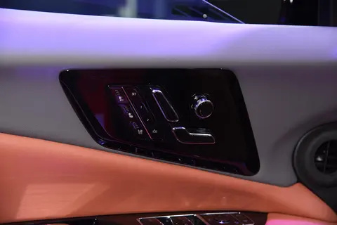 进入IQ傲歌的内饰,同样也是通用家族化的风格,最显眼的就是33英寸的曲面屏幕,内置了8195芯片。至于内饰的做工和用料,这台车都是非常扎实的水准,符合豪华品牌该有的表现。由于采用了悬浮式的中控台,所以整个前排的储物空间很丰富。