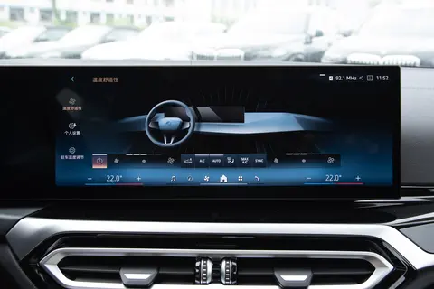内饰方面,宝马i3的设计同样不负豪华车的名号,优雅且不失科技感。中控区域的设计细节,如亮黑色面板和金属饰条的搭配以及一体化双屏显示系统,都是对未来驾驶体验的一种想象。尤其是中控屏的iDrive8系统,以其互联和信息娱乐的强大功能,进一步提升了整车的档次。