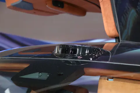 值得一提的是,这款车采用了同级别少见的鸥翼门设计,打开高度2.3m,雨天也能优雅下车;而门的打开宽度小至34cm,面对小车位也能从容应付。