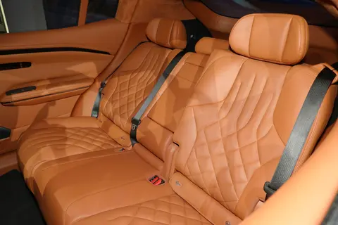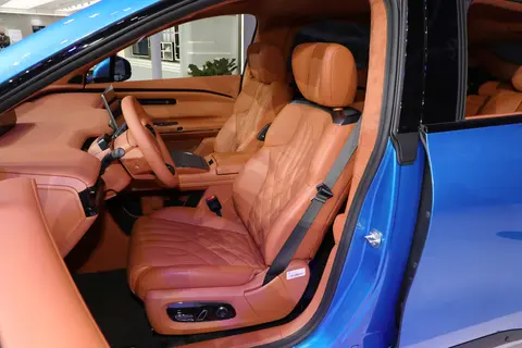 该车定位为中大型SUV,车身尺寸长4935mm、宽1920mm、高1700mm,轴距为2935mm,虽然尺寸在同级别车型中稍显常规,但内部空间表现还是比较不错的。体验者身高178cm,坐在前排时头部空间约有1拳3指,座椅采用真皮材质填充,柔软度和回弹力都不错,提供了不错的舒适性;来到后排坐着,腿部空间约两拳,并且靠背支持最大143°的调节,坐姿舒适。同时,新车搭载了22个杜比全景声扬声器、电动遮阳帘的全景天幕、主动式环境氛围灯、前后排多层隔音玻璃、车载空气净化器、车内香氛装置等,进一步提升驾乘体验。