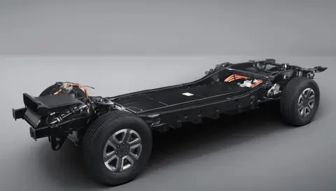 作为皮卡车型,承重能力依旧是第一要素,因此和燃油车一样,都是非承载式车身,电池被安装在大梁之间,纵梁部分使用辊压成型方钢技术。