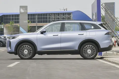 车身侧面设计简洁、大气,该车定位为中型SUV,提供了五座和七座两种座椅布局供消费者选择。车身尺寸方面,其长宽高分别为4795mm、1930mm和1738mm(七座版为1741mm),轴距达到2770mm,确保了宽敞舒适的乘坐空间。侧面采用了隐藏式门把手设计,增加了科技感。