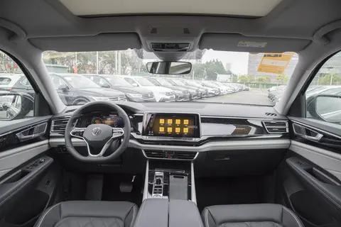 在空间方面,我们看到途昂整体采用的是家族式的设计,中控台依然为对称式T形的设计,中控台上设计有悬浮式的屏幕,尺寸达到12英寸。在互联方面,它支持Hicar、CarLife、CarPlay的手机互联,功能比较丰富。另外,它还支持OTA的远程升级功能。在车内还可以进行语音识别的控制,比较方便。途昂的方向盘采用了圆形三辐的设计方式,方向盘为真皮材质的包覆,握感比较舒适。除此之外,它还拥有全景天窗、自动三区空调、电动尾门等配置。