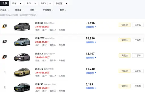 小鹏汽车旗下车型,近半年的销量,都没有一款到两万台!因此,我十分期待M03的表现;蔚来ES6非常可惜,暂时没有进入前十,但蔚来能够维持5月份的表现,预计7月初就能进入前十。