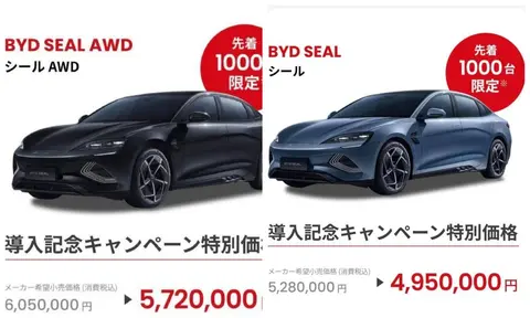 近日,继Atto 3和比亚迪海豚后,比亚迪在日本推出第三款电动汽车-海豹(图片|配置|询价),引发了较大关注。按照比亚迪的规划来看,每年都会在日本市场至少增加一款车型,登陆日本市场没有那么引人注目,但是此次上市的海豹售价可不低,和特斯拉Model 3差不多,后轮驱动版零售价 528 万日元(约合人民币 24 万元),全轮驱动版车型零售价 605 万日元(约合人民币 27.55 万元),两款车型均配备容量 82.56kWh 的电池组。