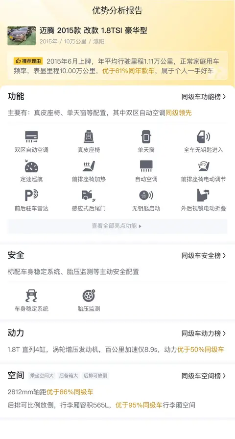 综上所述的用车成本、市场行情、优势分析、同款比价等数据仅供参考,车况信息需要线下结合车辆实际情况进行综合参考,祝您购车愉快!
