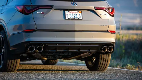 在车身侧面,新车则有着相对方正修长的线条,彰显了大空间的目标,同时车顶略带下坠,增强了讴歌应有的运动感,简洁动感腰线,大尺寸轮毂都不会缺席,巨大的红色刹车卡钳侧裙处的黑色装饰条,黑色后视镜罩,黑色行李架等元素,提升了运动的属性。在车尾部分,后风挡尺寸也不小,显示了美系车型应有的风格,车顶有着大尺寸的扰流板,彰显了运动姿态,扁平的尾灯造型简洁,并没有贯穿式结构,后保险杠部分则有着夸张的双边四出排气,彰显了Type S车型应有的气质。