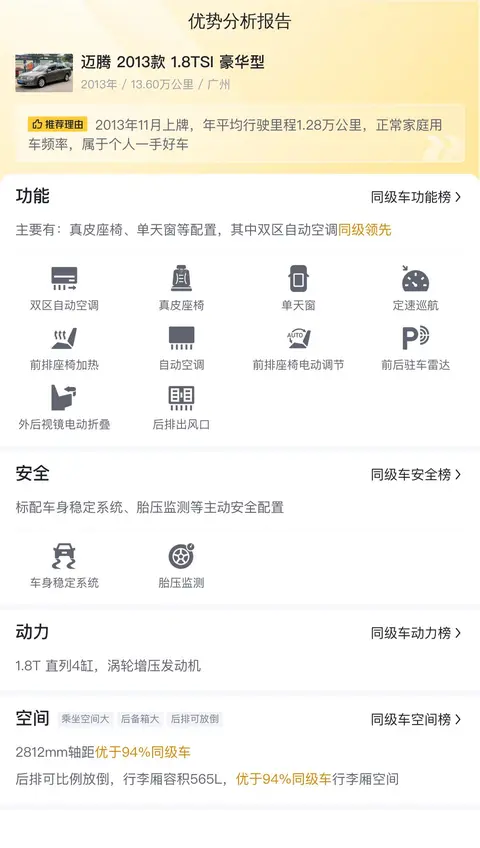 综上所述的用车成本、市场行情、优势分析、同款比价等数据仅供参考,车况信息需要线下结合车辆实际情况进行综合参考,祝您购车愉快。