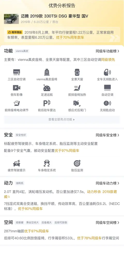 综上所述的用车成本、市场行情、优势分析、同款比价等数据仅供参考,车况信息需要线下结合车辆实际情况进行综合参考。