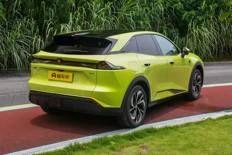 车身侧面线条流畅,悬浮式车顶、D柱萤星呼吸灯、隐藏式门把手和无框车门等设计元素使得整车造型前卫。尾部方面,悬浮造型的尾翼与星焰贯穿式尾灯相互衬托,底部配备的大尺寸扩散器进一步提升了车辆的运动气息。