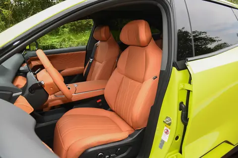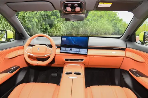内饰方面,中控台设计富有家居风格,配合大量热浪橙内饰显得比较温馨。车内未配备传统仪表盘,而是采用了AR-HUD增强现实抬头显示系统,将导航和行车信息直接投射在前挡风玻璃上,既直观又减少了低头频次,虽然可能需要一段时间来适应,但这种未来感确实令人兴奋。中控屏为15.6英寸,尺寸够大,屏幕分辨率达2.5K,支持左右最大15度调整,显示效果细腻。搭载Deepal OS车载智能系统,界面布局简洁并支CarPlay、Hicar、原厂原机、手机互联映射、可见即可说语音控制,内置高通8155车载智能芯片,响应速度流畅,比较符合现代人的需求。中央岛台设计竖直并采用了怀挡换挡机构,既节省了空间又增添了科技感。