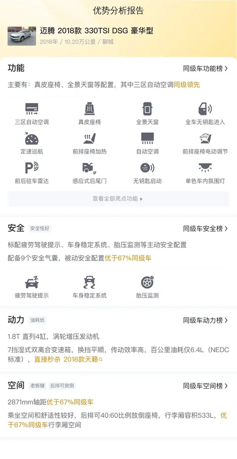 综上所述的用车成本、市场行情、优势分析、同款比价等数据仅供参考,车况信息需要线下结合车辆实际情况进行综合参考。